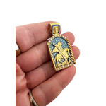 EC-205-CP24 Saint George Icon Pendant - Medal Large 1 3/4"x7/8" Sterling Silver 925 -24kt Gold Plate - Pearls - Top Icon Christ Made Without Hands - Prayer on The Back, ICXC Comes With Pouch
