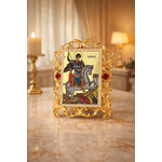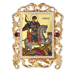 M3835X2298 Saint George Greek Byzantine Gold Foil Icon - Framed In Jeweled Frame, Decorated With Faux Crystals, 4 Inch, Orthodox Gifts