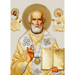 M-35-84 Orthodox Icon Saint Nicholas - Gold Foil Icon in Jeweled Frame With Crown and Cross - With its Stand and Small Chain for Hanging - Gift Boxed