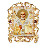 M-38-24s Saint Nicholas Icon - Framed In Jeweled Frame, Decorated With Faux Crystals, Virgin Mary and Christ 4 Inch