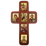 WC3-14 Greek Byzantine Icon Wall Cross - 14 Inch Oak Wood - Icons are Authentic Greek Gold Foiled - Nativity of Christ, Saint George, Saint Nicholas, Saint Michael, Sweet Kissing, Christ The Teacher