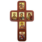 WC3-15 Greek Byzantine Icon Wall Cross - 14 Inch Oak Wood - Icons are Authentic Greek Gold Foiled - Seven Swords, Saint George, Saint Nicholas, Saint Michael, Sweet Kissing, Christ The Teacher