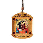 U519-522-523 Christmas Ornaments Nativity of Christ - Image of Christ The Teacher and Virgin Mary Virgin of Kazan - Byzantine Wooden Icon Mini Shrines Car Room Pendants on Rope with Crystals and Incense 3 Inch, Set of 3 [CLONE]