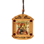 U575 Catholic Orthodox Madonna and Child Christ Jesus - Car Room Christmas Tree - Wooden Icon Shrine Pendant Ornament on Rope - Icon Covered With Special Glass - Crystals and Incense