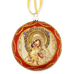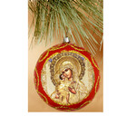 U303 Red Religious Christmas Ornament Madonna and Child Feodorovskaya - Not Breakable 4 3/4 Inch