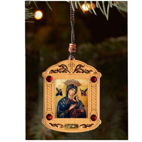 U349 Perpetual Help - Car Room Christmas Tree - Wooden Icon Shrine Pendant Ornament on Rope - Icon Covered With Special Glass - Crystals and Incense