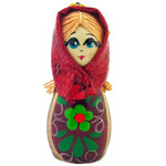 100-1R Hand Carved Painted Russian Wooden Ornament Girl with Scarf - Comes on Gold String For Hanging - 2 1/2 Inch, Red
