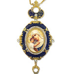 M-20B-71 Enameled Icon Pendant Madonna and Child With Crown and Chain for Hanging - Gift Boxed 5 3/4 inch