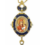 M-20B-71 Enameled Icon Pendant Madonna and Child With Crown and Chain for Hanging - Gift Boxed 5 3/4 inch