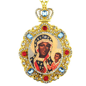 size of the frame: 4"x2 3/4" size of the icon: 2" size of the chain 2 3/4" BEAUTIFLY GIFT BOXED