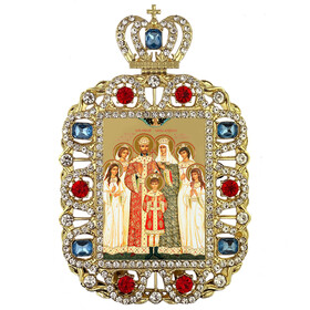 M-35-85s Royal Family Russian Icon in Jeweled Framed With Crown and Cross - With its Stand and Small Chain for Hanging - Gift Boxed