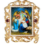 M-38-NA Nativity Of Christ Angels Catholic Orthodox Icon - Jeweled Framed, Decorated With Faux Crystals, Christmas Decoration 4 Inch