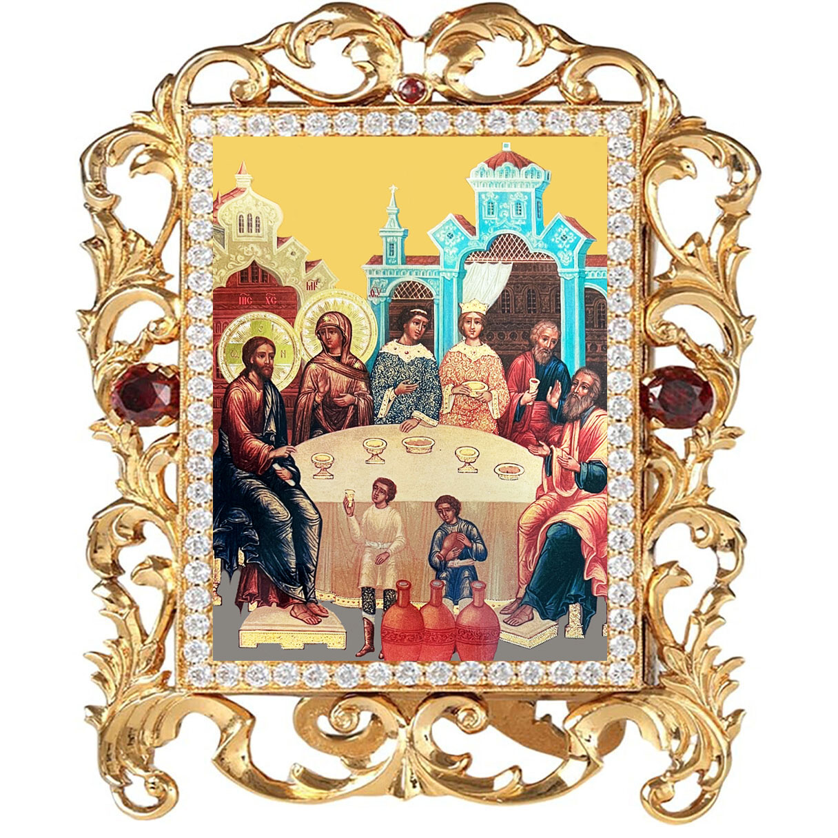 M-38-83s Wedding in Cana Icon in Jeweled Frame, Decorated With Faux Crystals, Gift Boxed 4 Inch