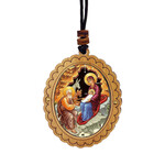 U496 Nativity of Christ - Car Room Icon Pendant 2 1/2 Inch Diam - On Rope total length 7 1/4 Inch