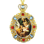 M-8-93 Nativity of Christ Jeweled Faberge Style Icon Pendant With Faux Crystals - Chain to Hang Gift Boxed