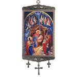 TL57 Nativity Of Christ Large Size Tapestry Icon Banner With Crosses 17"x8"