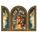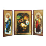 TR-20 Nativity Icon Triptych With Archangel Michael and Guardian Angel - Gold Foil - Wooden 6 1/4 Inch tall