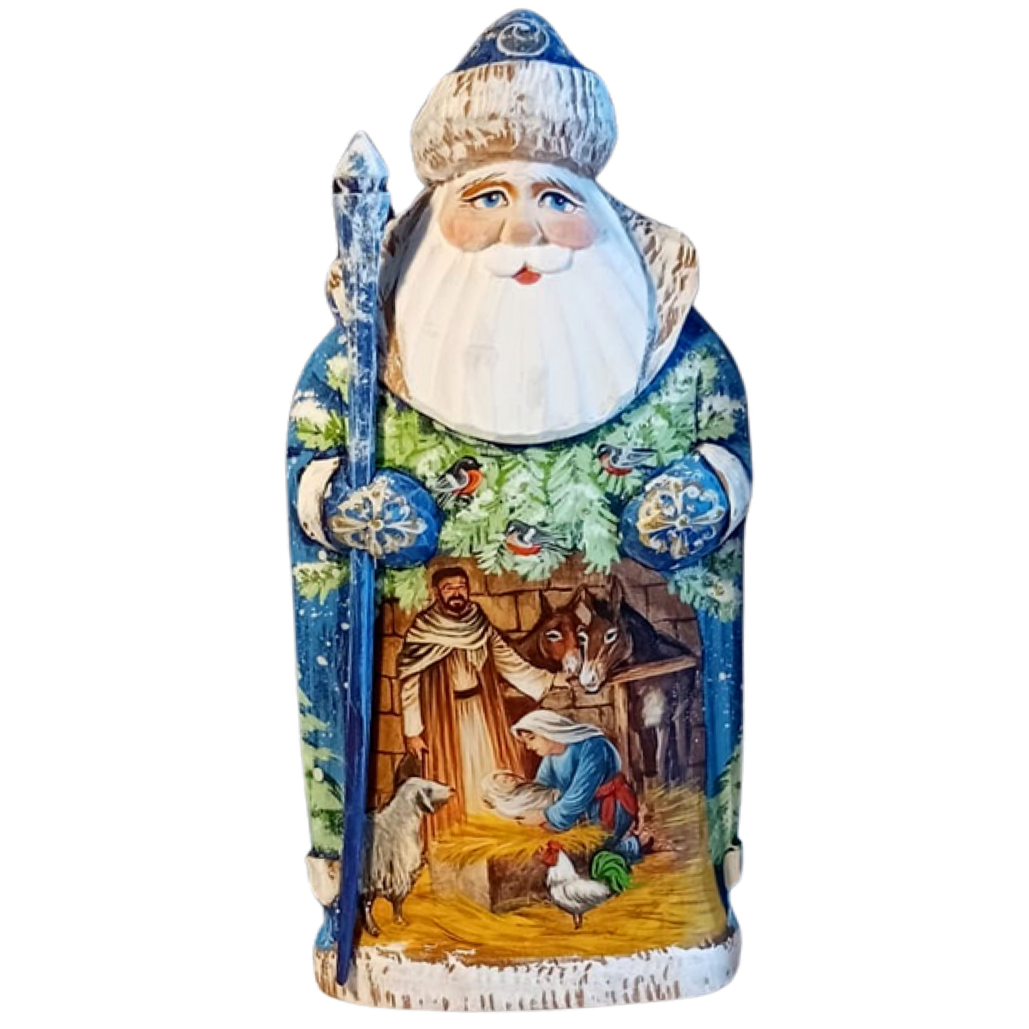 S-2 Winter Scene Santa Claus Russian Father Frost Hand Painted Winter Scene on Front and Back 8 inch tall x 3 3/4 Inch wide