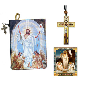 This beautifully pouch displays the Resurrection Icon on the front and bible verse on the back, making it a meaningful keepsake for prayer and reflection.