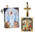 TIP86-S2 Easter Gift Set For Kids or Adults Set of 3 - Resurrection of Christ Tapestry Pouch With Bible Verse, Gold Foil Wooden Icon 3" - Car Room Wooden Cross