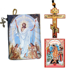 Set of 3 - Pouch - Icon - Wooden Cross - All items fit in pouch - Makes a beautiful gift idea for kids and adults