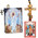 TIP86-S4 Easter Gift Set For Kids or Adults Set of 3 - Resurrection of Christ Tapestry Pouch With Bible Verse, Gold Foil Wooden Icon 3" - Car Room Wooden Three Bar Cross on Cord