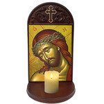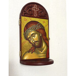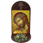 SHX5002 Gold foil Icon of Christ the Bridegroom in Wooden Shrine With Rosary, Candle and Holy Water Bottle Holder 8 1/2 inch tall