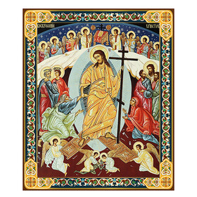 Resurrection Icon Decent Into Hell of Christ and Lifting up Of Adam and Eve Wooden Icon 3 Inch - Gold Foil -Gold foil Cross on the Back Side
