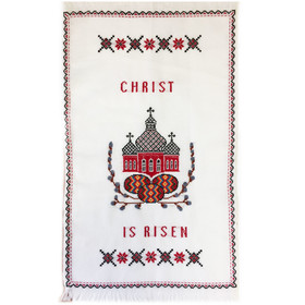 U157 Easter Basket Cover "Christ Is Risen" Hand Embroidered - Pysanky Eggs Church - From Ukraine