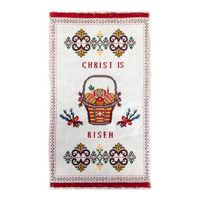 U141 Easter Basket Cover "Christ Is Risen" Hand Embroidered - Pysanky Eggs Church - From Ukraine