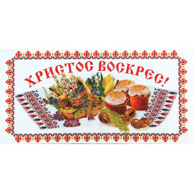 U199 Fabric Easter Pascha Basket Cover Kulich Flowers Pysanky Eggs Sign in Russian Christ is Risen! 22x11 inches
