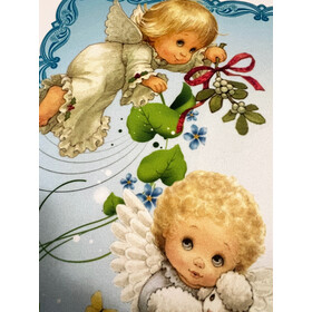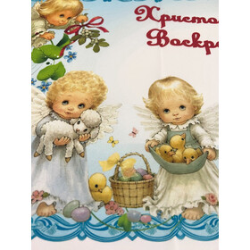 U617 Fabric Easter Pascha Basket Cover Angels Eggs Sign in Slavonic Christ is Risen! 22x11 inches