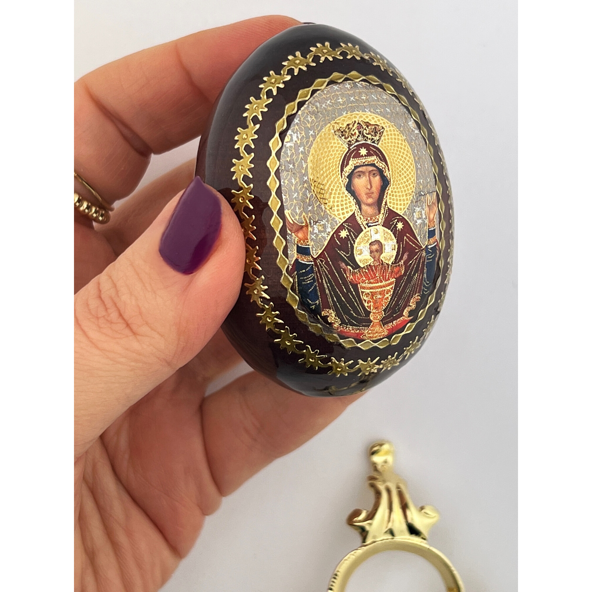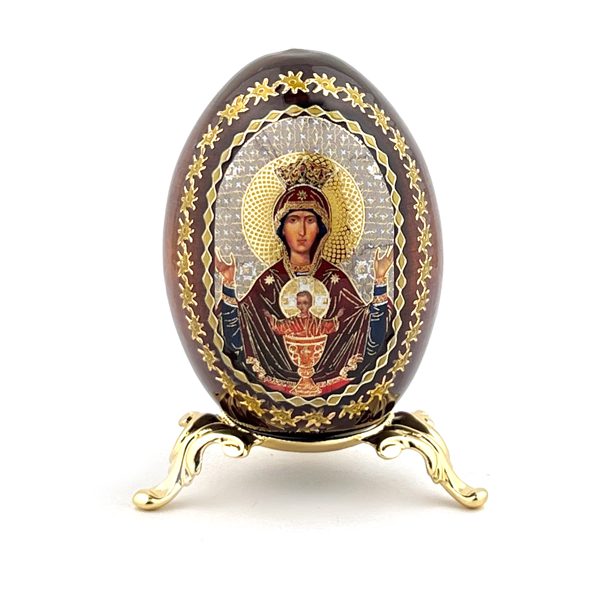 IED-4-21 The Inexhaustible Cup Gold Foil Icon Egg Wooden on Gold Metal Stand