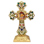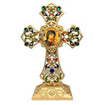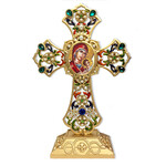 CR-7-16S Virgin of Vladimir Byzantine Icon Filigree Standing Jeweled Cross - Decorated with Faux Pearls 8 5/8 Inch