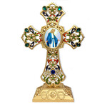 CR-7-35S Our Lady of Grace Icon Filigree Standing Jeweled Icon Cross - Decorated with Faux Pearls 8 5/8 Inch