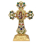 CR-7-73S Virgin of Vladimir Byzantine Icon Filigree Standing Jeweled Cross - Decorated with Faux Pearls 8 5/8 Inch