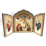 U262 Saint St Nicholas With Archangels Michael and Gabriel Icon Triptych 5 1/2 Inch Tall