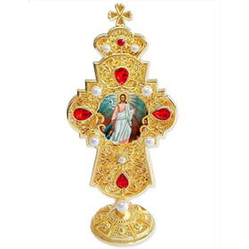 M-40-54s Resurrection of Christ Icon in Jeweled Cross Standing 7 Inch