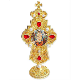 M40X2226 Resurrection Greek Gilded Icon in Jeweled Cross Standing 7 Inch