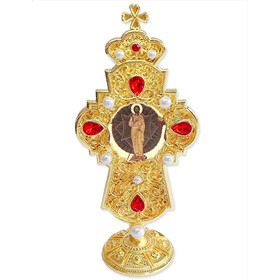 M40X2365X Transfiguration Greek Gilded Icon in Jeweled Cross Standing 7 Inch