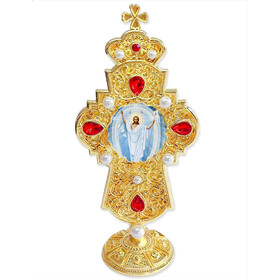M-40-56s Resurrection of Christ Icon in Jeweled Cross Standing 7 Inch