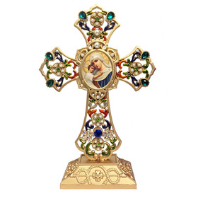 CR-7-71 Standing Jeweled Cross With Icon Madonna & Child 8 5/8 Inch