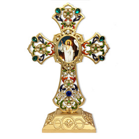 Bring beauty and inspiration into your home with this elegant Filigree Standing Jeweled Icon Cross!