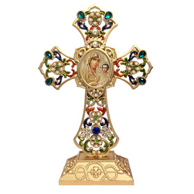CR-7-7 Standing Jeweled Cross With Icon Virgin Of Jerusalem 8 5/8 Inch