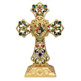 Bring beauty and inspiration into your home with this elegant Filigree Standing Jeweled Icon Cross!