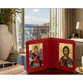 Traveling Prayer Book Elegant Leatherette Case with Gold Foiled Greek Icons