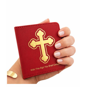 - Gold Foiled Details: Adorned with a stunning cross on the front and the phrase, “With This Sign You Shall Conquer” on the back, alongside intricate church domes embellished with the words “Faith, Hope, Love.” Cross domes and signs are gold foil
