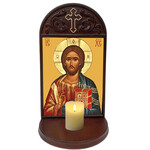 SH43 Extreme Humility Icon Wooden Shrine With Rosary, Candle and Holy Water Bottle Holder 8.4 inch tall