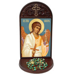 SH44 Eternal Bloom Gold Foil Icon Wooden Shrine With Rosary, Candle and Holy Water Bottle Holder 8.4 inch tall