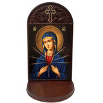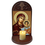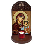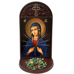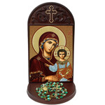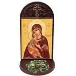 SH102 Virgin of Vladimir Gold Foil Icon Wooden Shrine With Rosary, Candle and Holy Water Bottle Holder 8.4 inch tall